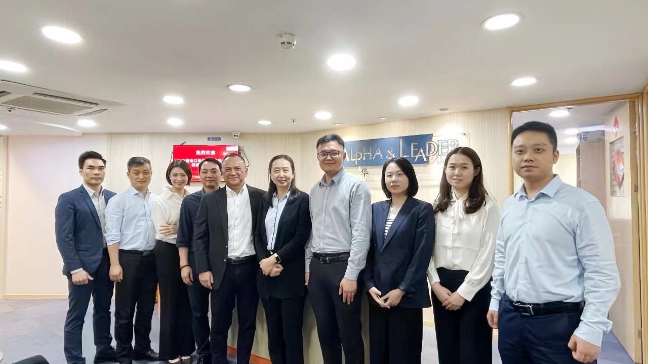 A delegation from China Export & Credit Insurance Corporation ("Sinosure") visited Alpha & Leader's headquarters in Guangzhou on May 8, 2024. The delegation was composed of Ms. Zhou Chunzheng, Deputy General Manager of Trade Insurance Claims & Recovery Department of Sinosure's headquarters, Mr. Jiang Nan, executive of the Department, as well as Ms. Xu Rong, executive from Sinosure's Guangdong Branch.